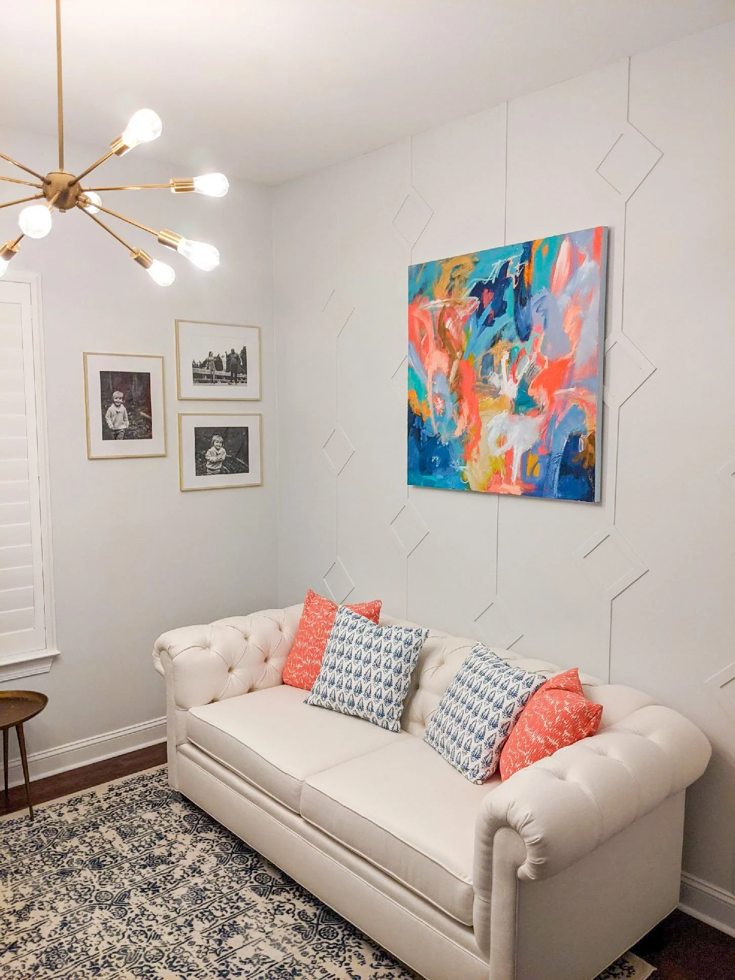 Sitting Room Makeover with Stunning Diamond Accent Wall